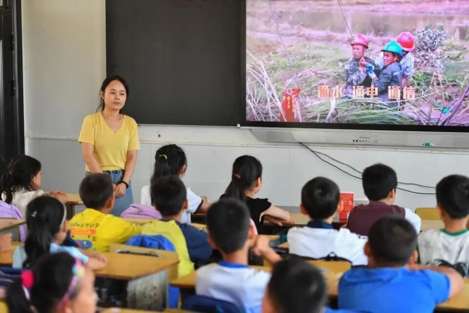 △今年夏天,湖南华容县等地遭受洪涝灾害。9月,华容县一所学校,老师通过讲述防灾救灾故事,引导孩子们知情、共情,汲取成长的力量。 如今,我国已经建成世界上规模最大的教育体系,教育普及水平实现历史性跨越。各级各类教师1891.8万人,传道授业、甘当人梯、默默奉献,充分展现了教书育人、立德树人的良好精神风貌。 习近平总书记指出,要把加强教师队伍建设作为建设教育强国最重要的基础工作来抓,健全中国特色教师教育体系,大力培养造就一支师德高尚、业务精湛、结构合理、充满活力的高素质专业化教师队伍。 党的二十届三中全会《决定》明确提出“提升教师教书育人能力,健全师德师风建设长效机制”。8月,《中共中央 国务院关于弘扬教育家精神加强新时代高素质专业化教师队伍建设的意见》进一步强调“将师德师风和教育家精神融入教师教育课程和教师培养培训全过程”。