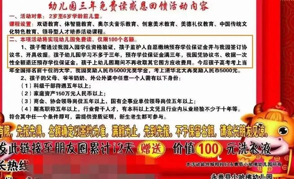 云南昭通一幼儿园突然停办不退学费,负责人:等我东山再起就还钱发表时间:2024-09-15 18:10 近日,多位云南昭通永善县家长反映,孩子就读的幼儿园突然宣布停办,且一直不退学费,园方负责人还声称“等我东山再起”,引发广泛关注。 ![]() 据当事家长介绍,涉事幼儿园名叫牛津国际稚慧岛幼儿园,原名“小哈佛”,在当地已经营了10余年。园方此前曾宣传,一次性交3年的学费3万元,孩子在幼儿园读满3年后,可以全额退款。 ![]() 该家长表示,据她所知,之前的两届都有家长收到了退款,自己家孩子也于两年前参加了这个活动,交了3万元,签订了协议,“我的孩子因为生病请假,没去幼儿园。星期三的时候,幼儿园通知家长去接孩子回家,说幼儿园停办了。好像园里老师之前都不知道,突然宣布的这个消息。” ![]() 该家长称,很多今年没有获得退款的家长,去幼儿园询问情况,园方一位姓胡的负责人称,“没有钱退,把我逼急了立即宣布破产,等我东山再起就还钱,起不来就没办法了,大家也要理解。” 还有家长表示,该胡姓负责人说这话时,自己就在现场,她家孩子今年8月19日入园,刚读了3个星期,也办理了一次性交3年学费的活动,“也没有公开发文说停办或破产,就通知家长去接孩子,让我们先收拾东西回家,教育局会安排的,现在园方负责人说没钱退。” ![]() 据此家长介绍,如果不参加上述活动,每年学费在9400元到10000元,也有好一些的班级收费会更贵。尽管当地教育局承诺会找新幼儿园,但是重新报名也需要钱,走司法程序时间又会拖很久,因此她现在还是准备继续找幼儿园退钱。 另据网传截图显示,在一个家长们组建的微信群里,家长们备注中有“交3万读了10几天”、“交5180读了20天”、“已毕业交3万”等信息。 9月14日,有家长在群里称已到当地派出所递交材料和做笔录。初步统计,未读完孩子超过100人,已毕业近30人,涉及需退费超过310万元。 永善县教体局工作人员表示,目前多个相关部门已在全力调查此事,也在处理安排相关孩子入读幼儿园的事情,但不清楚是否退费的问题,具体情况需联系宣传部。而永善县委宣传部电话,均处于无人接听状态。 有媒体报道,14日下午,曾电话联系了该园胡姓负责人,当听到询问此事后,该负责人直接挂断了电话。 END 图片来源:极目新闻、封面新闻 编辑:王宇豪 排版:王宇豪 审核:溪溪 ![]() 关注西部聚焦 获取更多资讯 声明:部分文章来源于网络,转载发布,版权归原作者所有,仅作为参考,如果网站中图片和文字侵犯了您的版权,请联系我们处理!发布是出于传递更多信息之目的并不意味着赞同其观点或证实内容的真实性。http://www.westtimes.cn/h-nd-2103.html