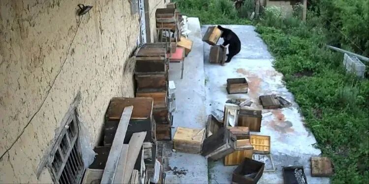 经仔细辨别,该村民发现画面中是两只野生黑熊,“它皮厚不怕蜜蜂蜇,舌头一舔,连蜜蜂也吃进去了。100多箱蜂蜜全被它们吃了,只给我留了两箱,损失惨重。”