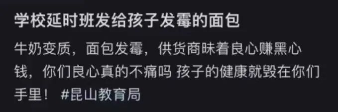 近日,有江苏昆山学生家长发文反映,校发放给孩子的餐食中,出现面包发霉的情况,引发广泛关注。目前,当地已成立调查组介入,对相关学生进行健康观察。 ![]() 多位家长透露,出事的点心是因为学校开展课后延时服务而发放。据了解,2022年,昆山市教育局要求义务教育学校推行课后服务“5+2”模式,即学校每周5天都要开展课后服务,每天提供2小时的课后服务。 有家长介绍,孩子的课后服务时间为15时30分到17时30分,课后服务之前的课间,孩子要补充能量,所以便按照学校要求为孩子订购了统一的点心餐,包括面包、牛奶等。 还有家长称,9月25日,她从孩子口中得知,有班级发现学校发放的面包发霉,自己孩子所在班级还没来得及发放。“点心不是必须订的,但图省事,还是给孩子订了,9月24日刚交完订购费。” ![]() 此外多位家长收到涉事学校的通知,从26日起停止供应点心,需要家长自己准备,只允许携带适量饼干、面包等充饥的点心,不允许携带饮料。 据昆山市市场监督管理局发布的一份“关于我市部分学校反映面包发霉情况的初步情况报告”显示,昆山市红盛农副产品有限公司(以下简称“红盛公司”)为昆山市学校食材配送单位。 9月24日14时30分,红盛公司从苏州利众食品有限公司(以下简称“利众食品”)采购面包作为点心餐配送。9月24日22时,红盛公司将面包存放于分装车间,9月25日13时分装面包,并陆续配送给7家学校,其间并未发现异常。9月25日15时许,一所中学在分发过程中,发现有面包发霉的情况,之后其余学校陆续发现类似情况。 报告称,这些面包的名称为“黄油蛋糕”,生产日期为9月24日,保质期为3天。贮存条件是保存于常温阴凉干燥处,避免阳光直射。 事发当天,执法人员对红盛公司分装车间进行了全面检查,现场卫生状况良好,未发现异常情况。昆山市市场监督管理局对红盛公司剩余面包进行现场查封,同时责令该单位立即对配送至学校的面包召回并清点封存,等待下一步处理,并将利众食品相关情况通报给工业园区市场监督管理局协同开展调查。 9月27日,昆山市市场监督管理局相关工作人员回应称,这份报告只是初步调查情况,目前此事仍在进一步调查中。 公开信息显示,红盛公司成立于2013年6月,注册资本为人民币2000万元,2022年1月25日取得《食品经营许可证》,经营范围为预包装食品(含冷藏冷冻食品)销售,散装食品(含冷藏冷冻食品)销售。 9月27日,红盛公司工作人员表示,“我们不是面包生产商,之前(对)生产商是挑选过的。”至于红盛公司如何考察、挑选生产商,在分装过程中是否存在问题,该工作人员称,生产商在接受调查,红盛公司也在配合相关部门调查。 此外,公开信息显示,涉事面包生产商利众食品成立于2018年4月,注册资本为人民币100万元,经营范围为食品生产、销售。 经查询,该公司曾在2023年6月受到苏州工业园区市场监督管理局的行政处罚,违法行为类型为生产经营国家禁止的食品、食品添加剂、食品相关产品的行为及其从属,罚款金额为人民币2万元。2022年的8月、10月及11月,该公司都被苏州工业园区市场监督管理局金鸡湖商务区分局责令整改。 END 来源:央视新闻、新京报 编辑:王宇豪 排版:王宇豪 审核:溪溪