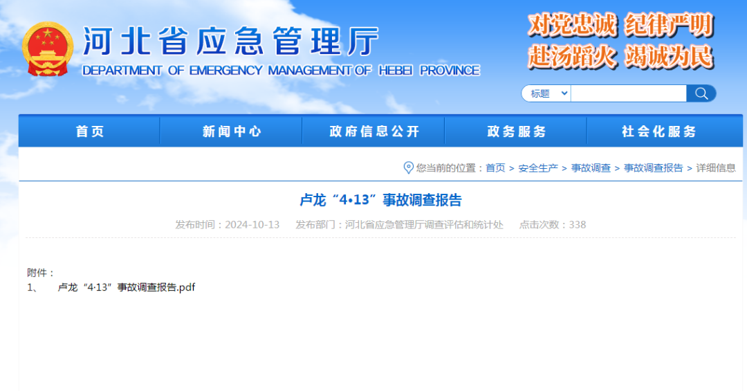 10月13日,河北省应急管理厅网站发布《秦皇岛卢龙“4·13”重大船舶倾覆事故调查报告》。