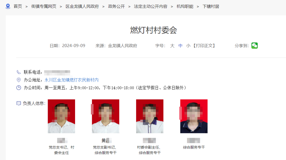 据金龙镇人民政府官网显示,燃灯村村委会公示的负责人信息显示,黄某排在第二位,职务为“党总支副书记、综合服务专干”。