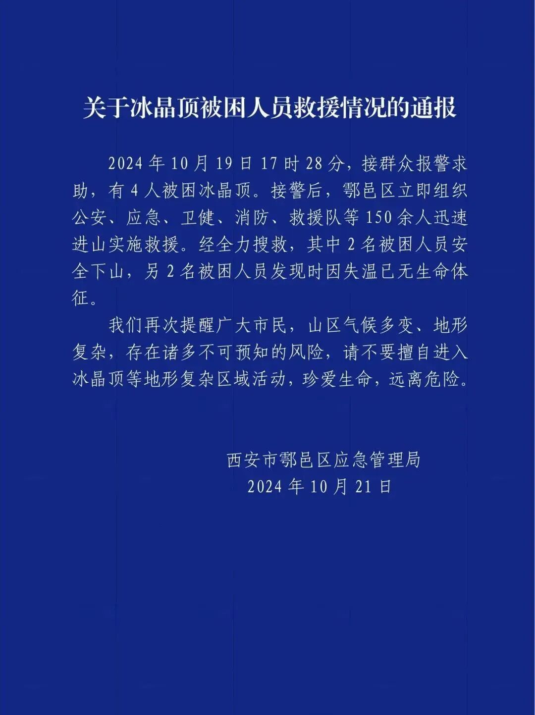 多名学生夜爬秦岭冰晶顶,一对情侣不幸遇难,陕西西安警方通报