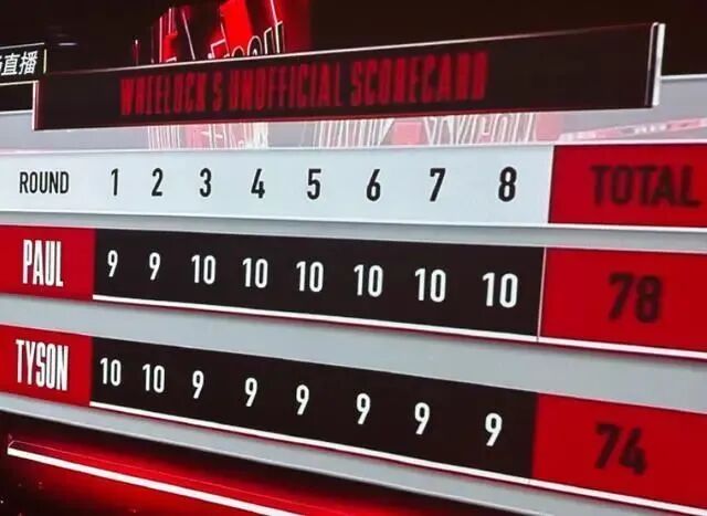 据央视体育消息,今天,在美国得克萨斯州阿灵顿AT&T体育馆,58岁传奇拳王泰森对决27岁网红杰克·保罗。本场拳赛共8回合,每回合两分钟。最终泰森打满8回合,以点数74比78不敌杰克·保罗。