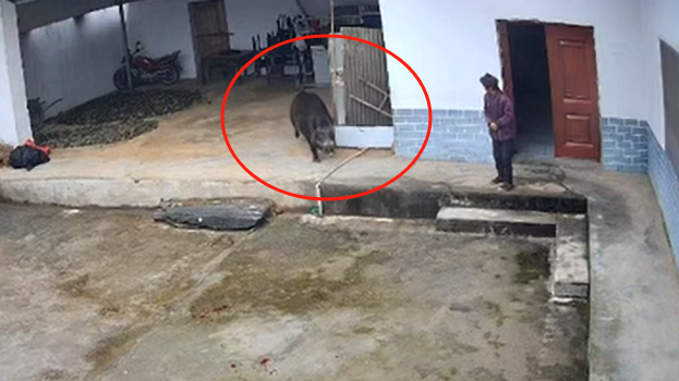 11月24日,网传监控拍下一野猪闯入居民家中,反复顶撞撕咬一名老人。