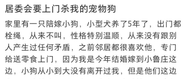 12月5日,有网友在社交平台发文反映,山东省济南市天桥区小鲁社区居委会禁止居民饲养宠物狗,称若饲养不听劝阻,将有人上门捕杀,引发关注。 ![]() 根据网友文中附上的《通知》显示:为维护小区环境卫生,避免宠物伤人和噪音扰民,小鲁居委会及物业告知小鲁村民及各租户禁止饲养狗、猫、鸡、鸭、鸽子等各种宠物及家禽,如家中有上述宠物、家禽的村民、租户务必尽快将您的宠物送走(请各位村民通知自己房客),一经发现房内饲养上述宠物及家禽,对不听劝阻者,联防人员会同公安机关进行捕杀,经济组织成员将按《居规民约》执行。《通知》落款为小鲁社区居委会。 ![]() 12月6日,小鲁社区居委会相关工作人员回应称,该《通知》确实在5日进行发布,现已被撤下。据他介绍,前段时间小区内有居民向物业反映,小区内存在饲养猫、狗、鸡、鸭等宠物和家禽的情况,且有老人因此受到惊吓。为保障居民的安全,物业工作人员拟定上述《通知》,并由社区盖章。 该工作人员表示,《通知》中的具体内容是物业人员措辞不当,社区工作人员在审核过程中也存在疏忽。目前,社区正在拟定情况说明,将对居民统一解释。 此外,属地天桥区药山街道办事处工作人员表示,街道办也已通知该社区撤销《通知》,并做好群众解释工作,严防此类问题再次发生。 END 来源:央广网 编辑:王宇豪 排版:王宇豪 审核:溪溪
