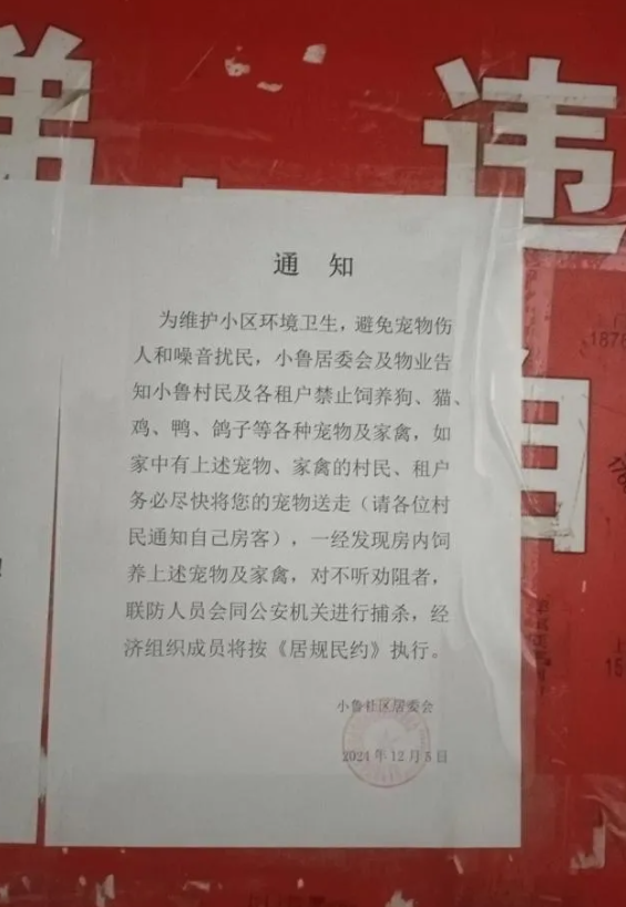 山东济南一社区发布“捕杀宠物家禽”通知?社区最新回应发表时间:2024-12-06 19:30来源:西部时报
