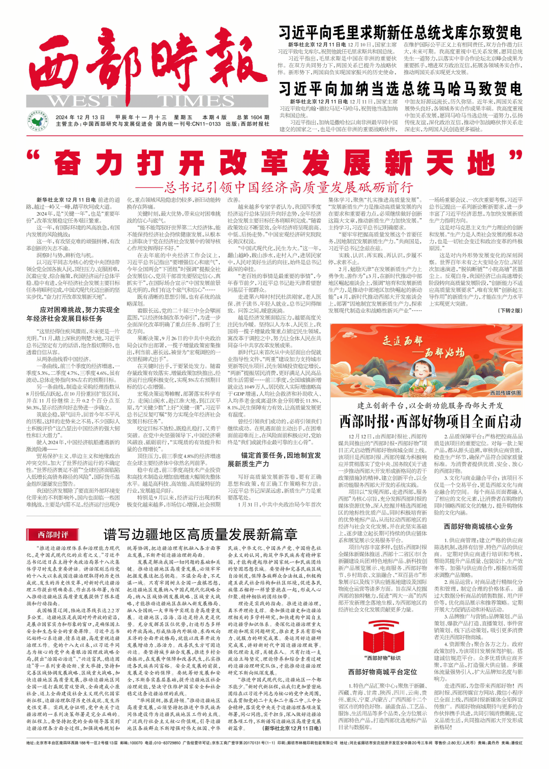 西部时报始终秉持“传递信息,报道真实,服务西部,共创美好”的办报理念,做西部广大人民实现美好生活的推动者和记录者。
