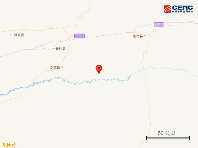 周边县城:震中距沙雅县56公里、距库车市79公里、距新和县85公里、距轮台县103公里、距拜城县153公里,距阿拉尔市191公里,距乌鲁木齐市458公里。