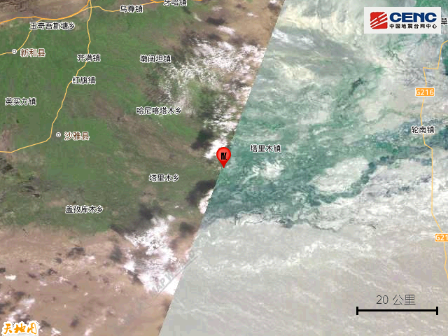 附近村镇:本次地震周边5公里内的村庄有克里也特村三小队、恰甫里玛、克里也特村二小队,20公里内的乡镇有塔里木乡、塔里木乡。