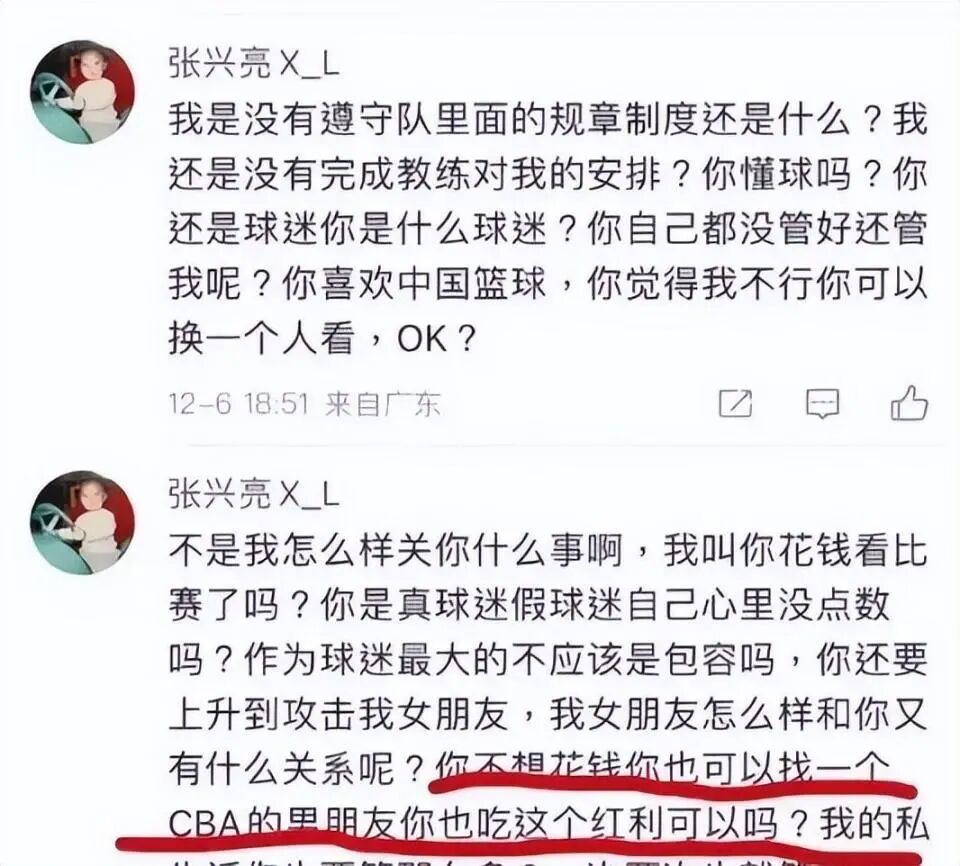 张兴亮此前在评论区开火:你不想花钱,你可以找一个CBA的男朋友,你也吃这个红利可以吗?我的私生活你也要管这么多?