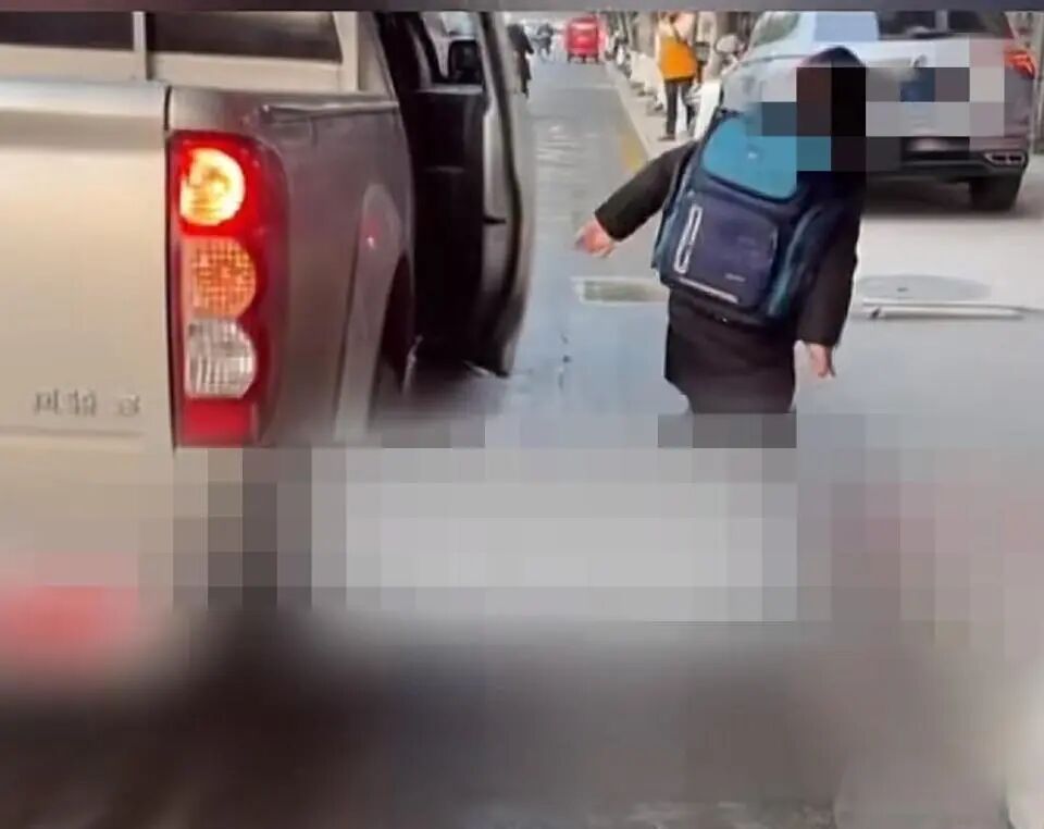 网传视频画面显示,一名背着书包的孩子从一辆号牌为川C6xxxx、车身上印有“城管”字样的皮卡车后排座位下车,关门后离开,车辆随即驶离。视频中,一男子声称“城管的车接学生”。