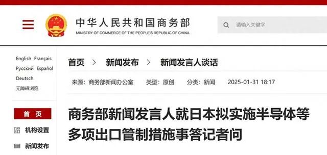 1月31日,商务部新闻发言人就日本拟实施半导体等多项出口管制措施事答记者问。