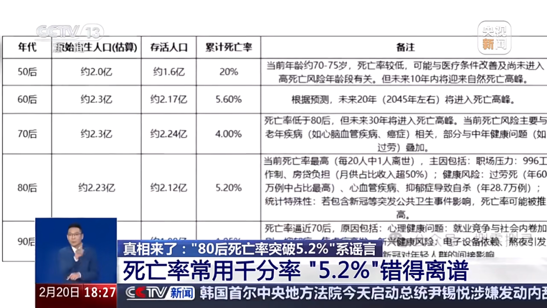 “80后”死亡率突破5.2%?教授:与事实严重不符!