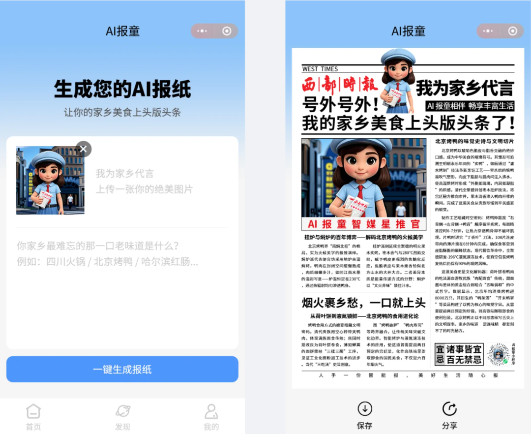 在这个全媒体深度融合的时代,《西部时报》以创新为驱动,以技术为引擎,再次书写传媒领域的新篇章。经过精心筹备,《西部时报》AI报童已正式上线,以智能化、个性化、场景化的服务,重新定义新闻阅读的体验版图,开启了全媒体阅读的新时代。 ![]() AI报童:媒体融合的“集大成之作” 作为《西部时报》推动媒体深度融合的里程碑产品,AI报童整合了DeepSeek等前沿AI大模型技术,以“十八般武艺”突破传统阅读模式,实现从单向传播到双向互动的跨越。其核心功能包括: 1. AI读报:情感化声音打破虚实界限 AI报童将以温暖且富有情感的声音,为用户播报《西部时报》的精选内容。从时政要闻到“一带一路”动态,从经济发展到西部文化传承,通过每周两次的AI情感化读报,将移动端碎片化阅读重新赋予传统报纸的"送达仪式感",利用语音的温度感建立用户情感连接。采用"敲响新闻之门"的隐喻设计,在数字空间中复现物理订阅体验,解决Z世代用户对纸质媒介的情感断层。 ![]() 2. “你的AI报”:UGC+PGC内容生态突破 "你的AI报"功能创新性地将用户家乡记忆与新闻生产结合,用户只需上传一张照片并分享家乡美食记忆,即可生成以个人故事为核心的定制化AI报纸,实现从"阅读内容"到"创造内容”的范式转变,用户生成内容(UGC)反哺专业内容(PGC),形成内容生产闭环,打造独一无二的视觉与情感体验。 ![]() 3. 场景化服务实现媒体价值延伸 集成西部好物、医触即达、报纸订阅等实用功能,构建"生活内容创作+服务"超级入口,覆盖文化娱乐、生活消费、健康服务等多场景,为用户提供一站式便捷服务。 技术赋能:西部控股集团助力媒体创新 AI报童的诞生离不开西部控股集团在人工智能领域的技术支持。通过深度结合媒体属性与AI技术,不仅实现了内容生产的智能化升级,更构建了“新闻+服务+社交”的生态闭环,标志着《西部时报》从“内容提供商”向“智慧生活服务者”的转型。 即日起,用户可通过《西部时报》官方网站、小程序及合作平台体验AI报童服务。参与“晒家乡头条”活动,还有机会赢取西部文化主题好礼! ![]() 《西部时报》AI报童的诞生,不仅是一次技术赋能的探索,更是媒体与公众对话方式的革新。通过深度融合DeepSeek等大模型技术,它打破了传统媒体的单向传播壁垒,让新闻从“可读”跃升为“可听、可感、可互动”的沉浸体验。让资讯服务真正嵌入生活场景,赋予阅读以温度与生命力,重新定义了媒体作为社会服务枢纽的角色,让每个人都能在时代浪潮中触摸到属于自己的“新闻脉搏”。 这不仅是《西部时报》在媒体融合道路上的里程碑,更是人工智能技术赋能文化传播的生动实践。未来,AI报童将持续升级,以更智慧的交互、更丰富的场景,成为连接西部文化传承与时代创新的桥梁,让每一份新闻传递价值,让每一次点击焕发意义。 编辑:开心 审核:溪溪 END 声明:部分文章来源于网络,转载发布,版权归原作者所有,仅作为参考,如果网站中图片和文字侵犯了您的版权,请联系我们处理!发布是出于传递更多信息之目的并不意味着赞同其观点或证实内容的真实性。http://www.westtimes.cn/h-nd-4659.html