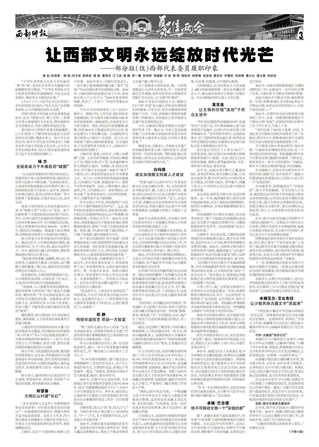 西部时报始终秉持“传递信息,报道真实,服务西部,共创美好”的办报理念,做西部广大人民实现美好生活的推动者和记录者。