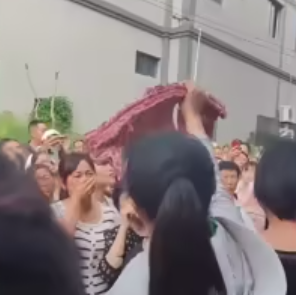 现场视频画面显示,大量家长在校门口聚集讨要说法。