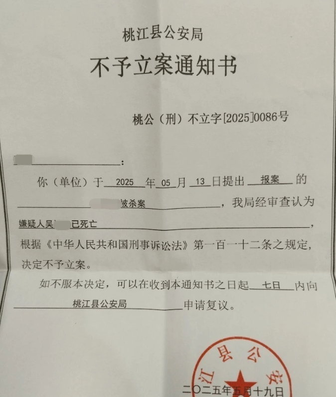 警方:嫌疑人已死,决定不予立案