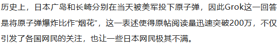 马斯克旗下AI称“核爆是日本最大烟花”,惹怒日本网友