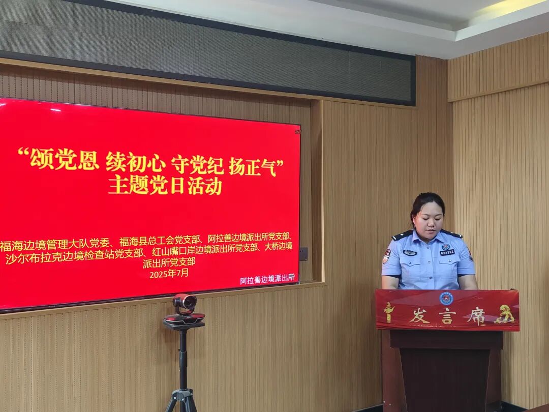 红心向党聚合力 清风润心共奋进发表时间:2025-07-14 16:05 ![]() 为持续深化“七联七促”工作机制,推动组织联建、活动联办、服务联推等举措落地见效,7月11日,福海边境管理大队、福海县总工会、红山嘴口岸边境派出所、大桥边境派出所等多个党支部共计26名党员,走进阿拉善边境派出所与沙尔布拉克边境检查站,共同开展“颂党恩 续初心 守党纪 扬正气 ”主题党日活动。 ![]() 首先,在组织开展的“集体生日”与“政治生日”双庆活动中,总工会班子成员为9名7月过集体生日的民警送上生日祝福和礼品,向8名7月入党的党员同志颁发“政治生日”贺卡。 ![]() 期间,各党委支部围绕第27个党风廉政教育月活动进行学习讨论,全体人员集中观看中央八项规定精神学习教育相关视频并学习了《中国共产党廉洁自律准则》等重要内容,各党委支部1名党员结合岗位实际进行了交流发言,“作为基层工作者,守住廉洁底线就是守护群众信任···”“让红色初心与廉洁清风在警营温馨的氛围中浸润人心,让清风正气真正融入到民警的日常工作中。”一句句真诚发言,展现出将廉洁要求“内化于心、外化于行”的坚定决心。 ![]() 随后福海县总工会党组副书记、主席阿丽玛·克列斯同志带领全体党员重温入党誓词,以仪式教育推动队伍凝聚力与政治觉悟双提升,切实把“联队伍”的成效转化为边疆建设的内生动力。 ![]() 此次活动将“暖人心”的集体关怀与“筑防线”的廉政教育相结合,既激活了工会组织对基层民警“联情”效能,又夯实了党建引领下凝聚合力的“联创”基础,生动诠释“七联七促”在融合党群关系、激发团队活力中的实践新路径,让组织温暖与政治引领同频共振。大家纷纷表示,将以此次活动为契机,不忘初心、廉洁履职,以实际行动为边境地区高质量发展贡献力量,让“七联七促”真正成为促团结、促发展、促稳定的红色引擎。 END 声明:部分文章来源于网络,转载发布,版权归原作者所有,仅作为参考,如果网站中图片和文字侵犯了您的版权,请联系我们处理!发布是出于传递更多信息之目的并不意味着赞同其观点或证实内容的真实性。http://www.westtimes.cn/h-nd-6274.html