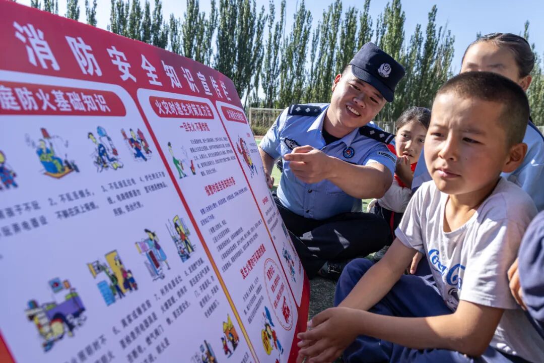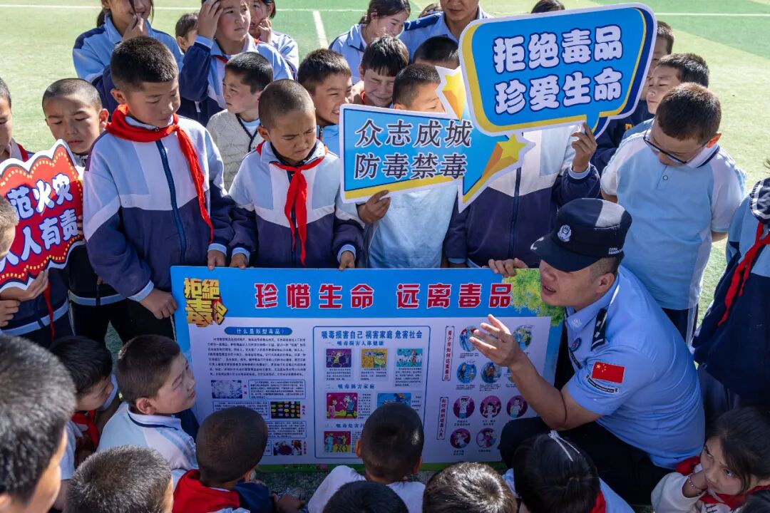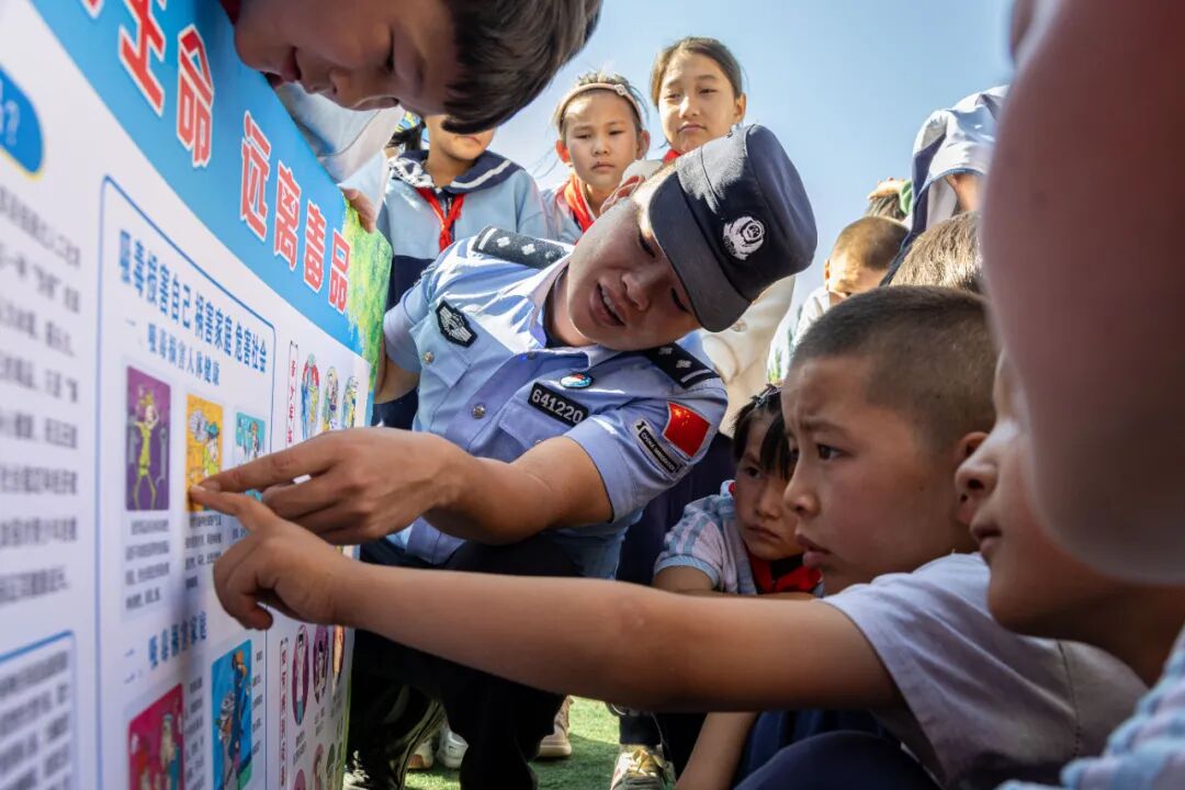 2025年8月26日新疆出入境边防检查总站克州边境管理支队依达良边境派出所民警走进依达良寄宿小学,开展“开学第一课 法治进校园”主题活动。民警通过课堂讲解、操场互动等形式,向在校师生普及消防安全知识和毒品危害,帮助他们提升安全防范意识,增强自我防范能力。
