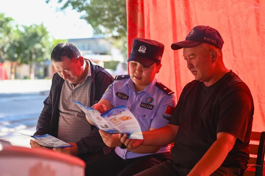8月19日,新疆出入境边防检查总站克州边境管理支队膘尔托考依边境派出所开展了“反诈宣传进辖区安全防范入民心”的法治宣传活动。