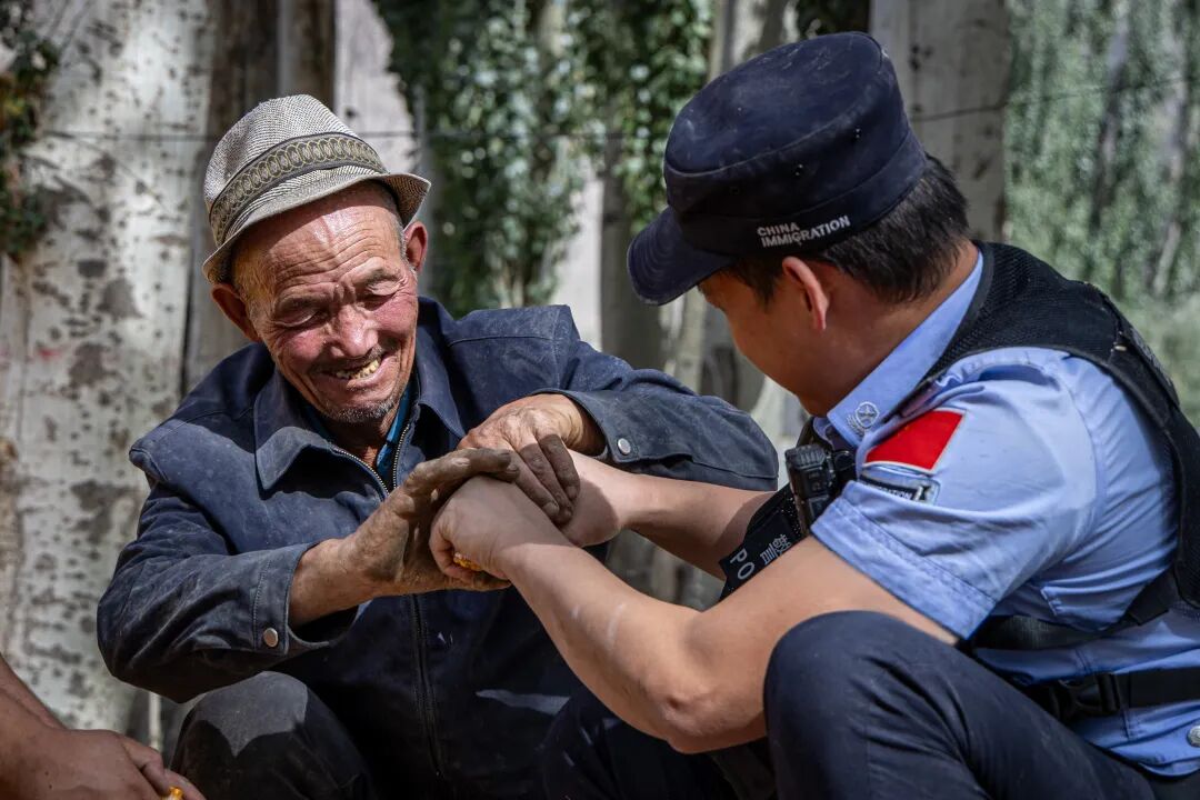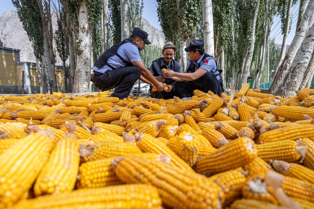 9月22日,新疆出入境边防检查总站克州边境管理支队依达良边境派出所民警辅警走进田间地头,助力牧民秋收,缓解农户劳动力紧缺难题。
