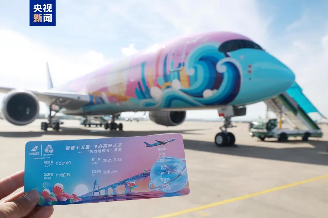 此次投入运营的“活力湾区号”历时17天完成全身“彩绘新衣”,以“活力湾区 跃动世界”为主题,呈现大湾区连接全球、美美与共的壮阔图景,机身图案复杂、细节繁多,光颜色就有近50种,融合港珠澳大桥、“十五运”吉祥物“喜洋洋”和“乐融融”、海鸥及木棉花等元素。首航当天,广州白云国际机场设置首航专属柜台,为运动健儿、赛事官员及观赛旅客提供一站式服务。19日后,首架主题彩绘客机后续还将执飞广州-上海浦东、广州-杭州、深圳-北京大兴、深圳-上海虹桥等多条航线。