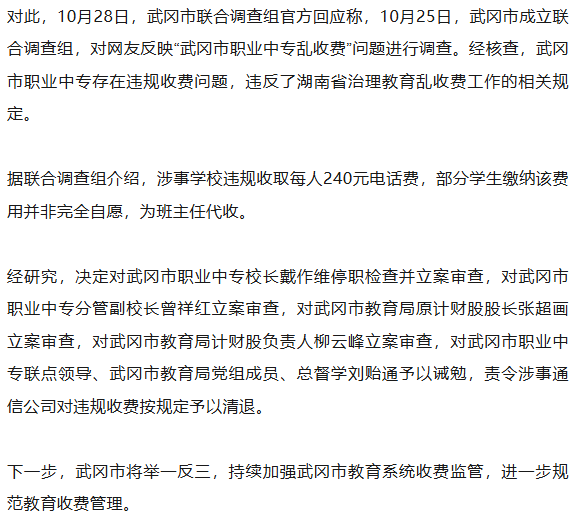 湖南邵阳一学校乱收费,每人收240元电话费?官方回应:校长等多人被立案审查
