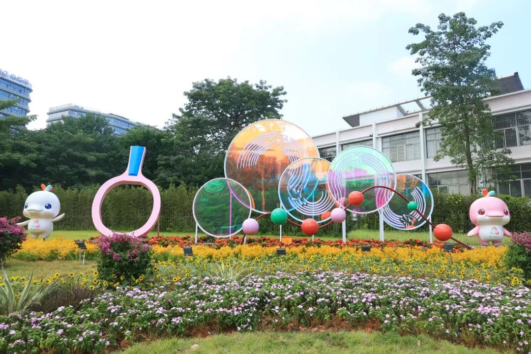 “点”上精雕,天河通过“花带、花境、花箱、挂花”的立体组合,塑造出层次丰富的花卉景观,尽显“公园城区”四季芳菲的魅力。串联成“线”,联通全区的广园快速路、黄埔大道、车陂路等“七横四纵”11条主干道,布设35处融合全运吉祥物、赛事标语与体育元素的景观小品,让赛会氛围沿着城市“动脉”自然流淌。