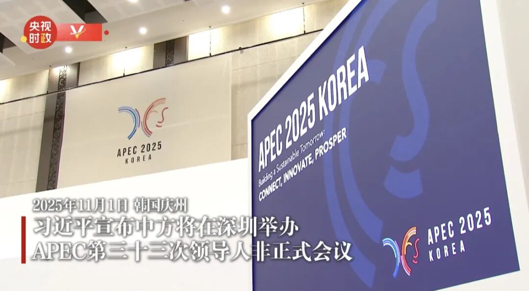 当地时间11月1日上午,国家主席习近平出席亚太经合组织第三十二次领导人非正式会议东道主交接环节,宣布中方将于明年11月在广东省深圳市举办亚太经合组织第三十三次领导人非正式会议。