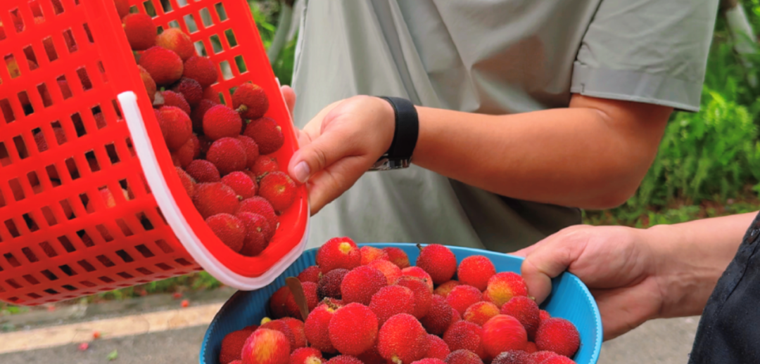 5 月 31 日起,照母山森林公园开启了面向市民的杨梅采摘系列活动。工作人员将新鲜杨梅摘下后,在园区内设置多个免费品尝点。重庆市两江新区市政园林水利管护中心公园科科长王明春介绍,此次活动将持续约一周,采摘的 500 多斤杨梅供市民分享体验。