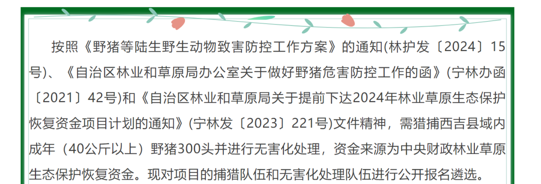 日前,宁夏固原市西吉县发布了一则公开招募“野猪猎人”的公告,引起广泛关注。 ![]() 据当地林业和草原局发布的《关于遴选2024中央财政西吉县野猪综合防控项目捕猎队伍和无害化处理队伍的公告》称,根据相关文件精神,需猎捕西吉县域内成年(40公斤以上)野猪300头并进行无害化处理,故对项目的捕猎队伍和无害化处理队伍进行公开报名遴选。 ![]() ![]() 公告显示,该项目计划猎捕西吉县域内成年(40公斤以上)野猪300头,每头补偿2400元,经费预算为72万元;无害化处理成年(40公斤以上)野猪300头,每头200元,经费预算为6万元。 值得注意的是,该公告中指出,猎捕对象为野猪,不得对猎捕区域其他野生动物进行猎捕;同时要求猎捕队伍必须配备无人机、红外相机、猎犬10只以上、猎夹、军工刀数把、铁网、防护服等工具。有部分网民对此提出质疑,“捕杀野猪是否破坏野猪种群?” 9月25日,西吉县林业和草原局工作人员声明,本次捕猎不能用枪,也不能下毒,目前已经有队伍进行了报名。此外,该局只是根据国家相关政策出台的捕猎公告,并非域内野猪数量过多或者野猪泛滥。 ![]() 固原市林草局办公室的工作人员则解释称,由于这两年野猪比较多,对周边农户农作物造成侵害的事件也常有发生。“每年政府都要拿一定资金去赔偿,所以就申请了一个种群调控的项目,野猪数量超过固定的区域的承载量之后,就给林草部门下达一定的种群调控的数量,对成年的野猪进行捕杀。” 该工作人员还表示,捕杀野猪是有科学监测和评估依据的,不是盲目地捕猎。 事实上,近年来,随着全国天然林保护、自然保护区及野生动植物保护等系列工程的实施,野生动物栖息地生态环境质量持续改善,野猪等野生动物种群不断增长。 由于野猪繁殖力强、成活率高、适应性广,天敌种群数量相对较少,使得部分地区野猪的种群数量激增,因此造成了大量的人兽冲突。几乎每年春种和秋收的过程中,都可以看到各地关于野猪下山祸害农田的新闻,被野猪祸害过的农户轻则减产,重则颗粒无收。 据媒体此前报道,宁夏固原的一些县城里,绝大部分当地人依靠种地为生。因为缺水,农作物都是靠天吃饭。“有时好不容易下了雨,雨停了,猪来了,一年都白干了。” 2021年,国家林草局在山西、四川、福建、江西、陕西、宁夏等14个省(区)启动防控野猪危害综合试点,试点各地开始组建狩猎野猪护农队。 2023年6月30日,国家林草局公布了新调整的“三有”名录(国家保护的有益的或者有重要经济、科学研究价值的陆生野生动物名录),在部分地区致害严重的野猪已被调出“三有”名录。 END 来源:九派新闻 编辑:王宇豪 排版:王宇豪 审核:溪溪 ![]() 声明:部分文章来源于网络,转载发布,版权归原作者所有,仅作为参考,如果网站中图片和文字侵犯了您的版权,请联系我们处理!发布是出于传递更多信息之目的并不意味着赞同其观点或证实内容的真实性。https://www.westtimes.cn/h-nd-2233.html