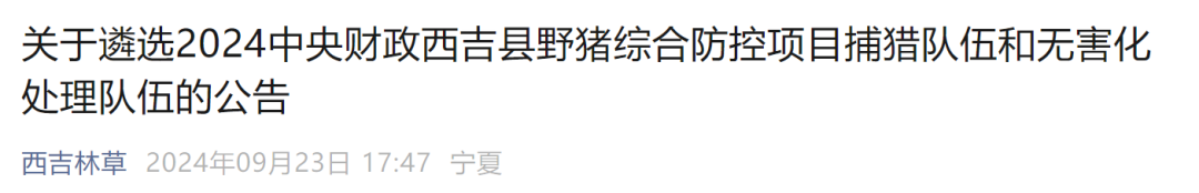 宁夏固原公开招募“野猪猎人”,每猎1头野猪给2400元!官方回应发表时间:2024-09-25 16:54来源:西部时报