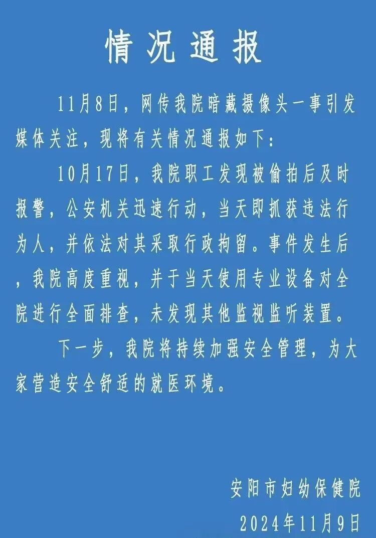 河南安阳妇幼保健医院更衣室暗藏摄像头,院方通报:违法行为人已被拘留