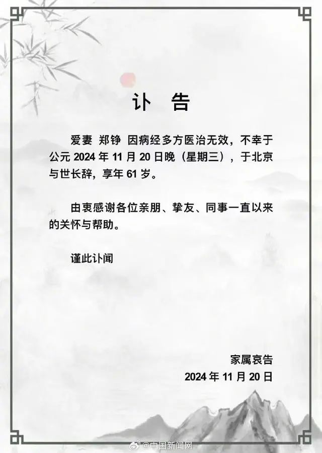 11月20日,著名演员、87版《红楼梦》“鸳鸯”扮演者郑铮去世,享年61岁。