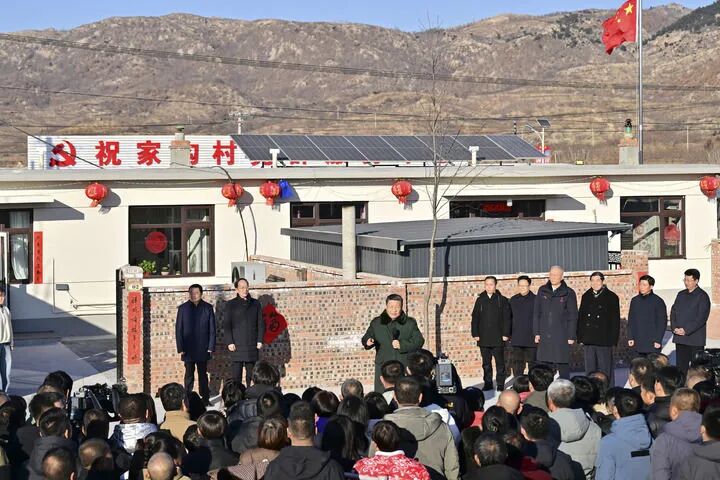 1月22日至24日,中共中央总书记、国家主席、中央军委主席习近平冒着严寒来到辽宁,看望慰问基层干部群众。这是22日下午,习近平在葫芦岛市绥中县明水满族乡祝家沟村考察时,同村民们亲切交流,向大家致以诚挚慰问和新春祝福。新华社记者 谢环驰 摄 22日下午,习近平抵达葫芦岛市,乘车近一个小时来到绥中县明水满族乡祝家沟村。去年8月,这里遭受严重洪灾,入冬前41户村民搬进重建的新居。习近平在村口察看受灾区域,详细询问当时房屋被淹和村民转移情况,随后到村党群服务中心结合视频、展板了解灾后恢复重建进展,叮嘱当地干部务必安排好群众生产生活,确保温暖过冬。