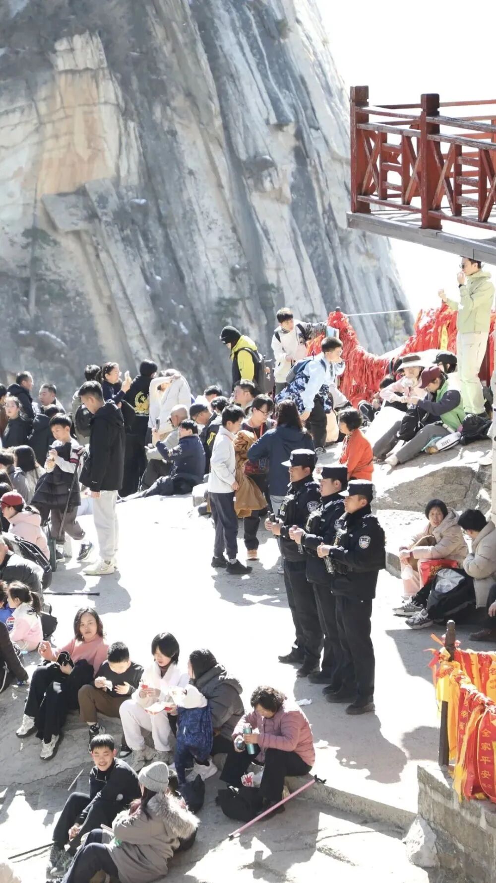 陕西渭南民警在华山景区巡逻,保障游客安全游览。 今年春节假期长达9天,被称为“最长春节假期”,群众返乡出行热情高涨,人流物流车流密集,大型活动集中举办。公安部党委高度重视春节假期安保维稳工作,多次进行研究部署,要求全国公安机关准确把握岁末年初社会治安规律特点,加强应急值守、指挥调度,落实领导带班、值班备勤等制度,扎实抓好打防管控建各项措施。节日期间,公安部加强组织领导和统筹指挥,每日调度全国社会面情况,针对性进行强调部署。各级公安机关负责同志坚守岗位、靠前指挥,广大民警辅警恪尽职守、忠诚奉献,从严从实从细狠抓各项安保维稳措施落实。