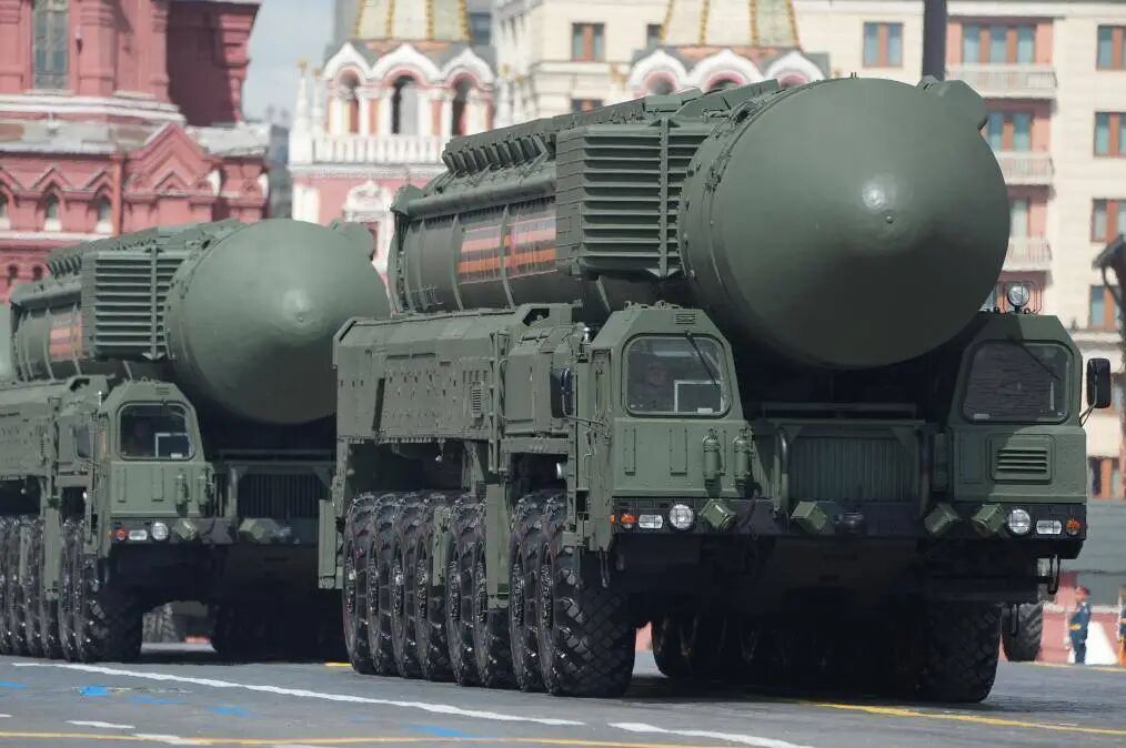 这是2025年5月9日在俄罗斯首都莫斯科举行的纪念苏联伟大卫国战争胜利80周年阅兵式上拍摄的洲际弹道导弹。