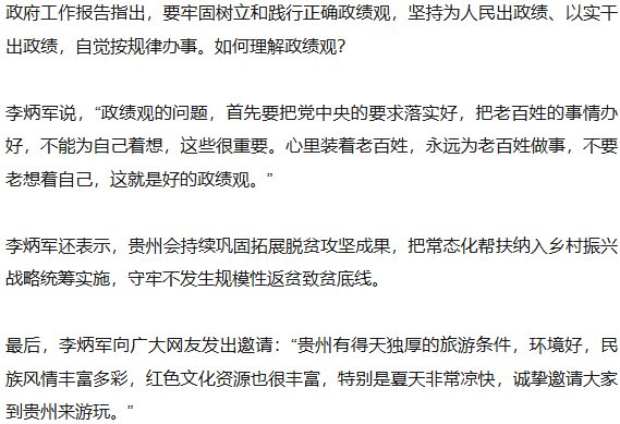 全国人大代表、贵州省省长李炳军:心里装着老百姓,永远为老百姓做事,不要老想着自己,这就是好的政绩观